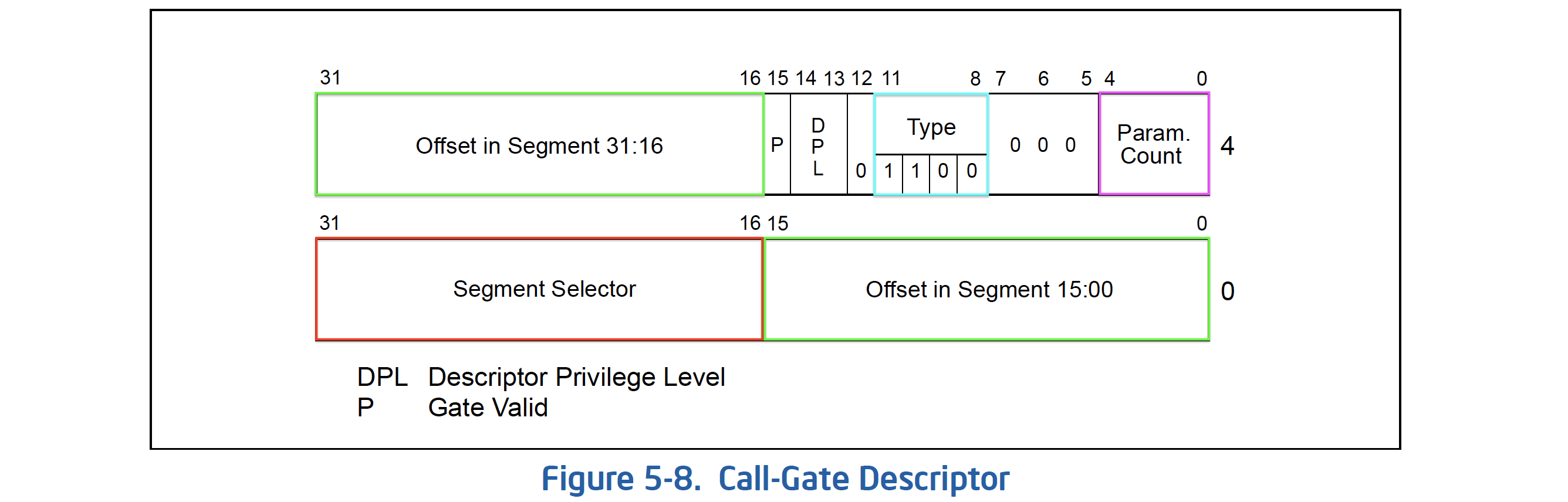 (5)Base=0,G=1则Limit=0xFFFFFFFF,则Offset可随意构造
