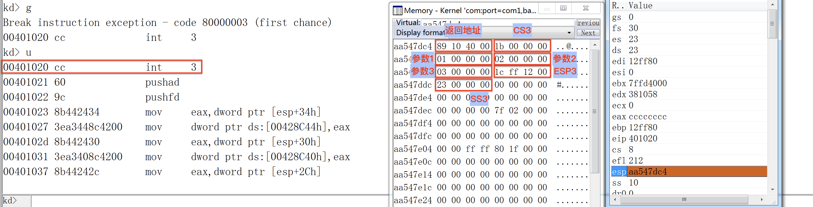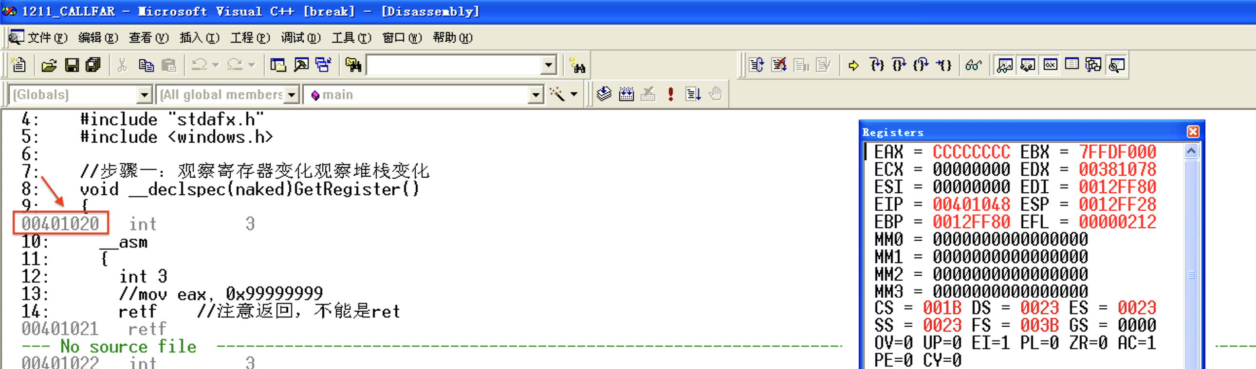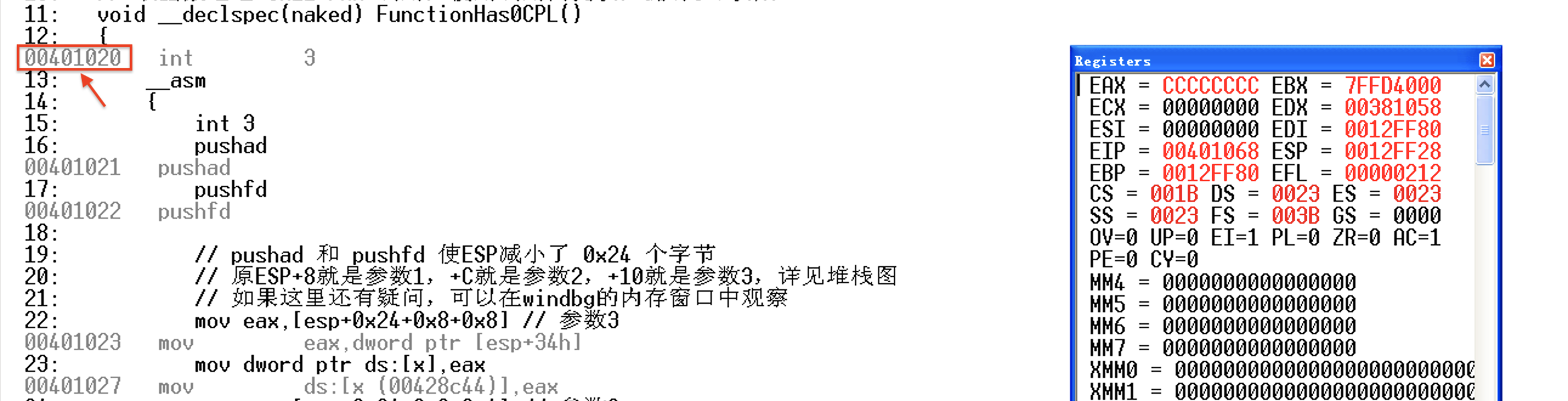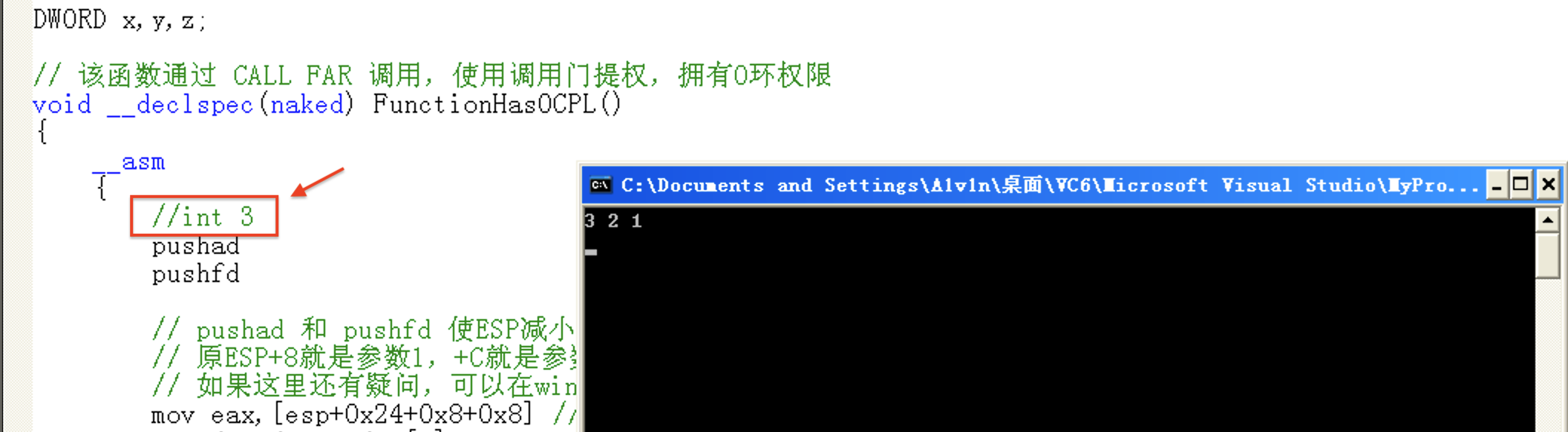 //int 3 注意这里的断点在调试时可以用,但是在真正运行时不能