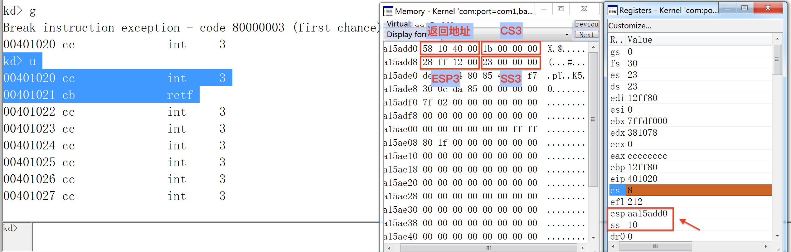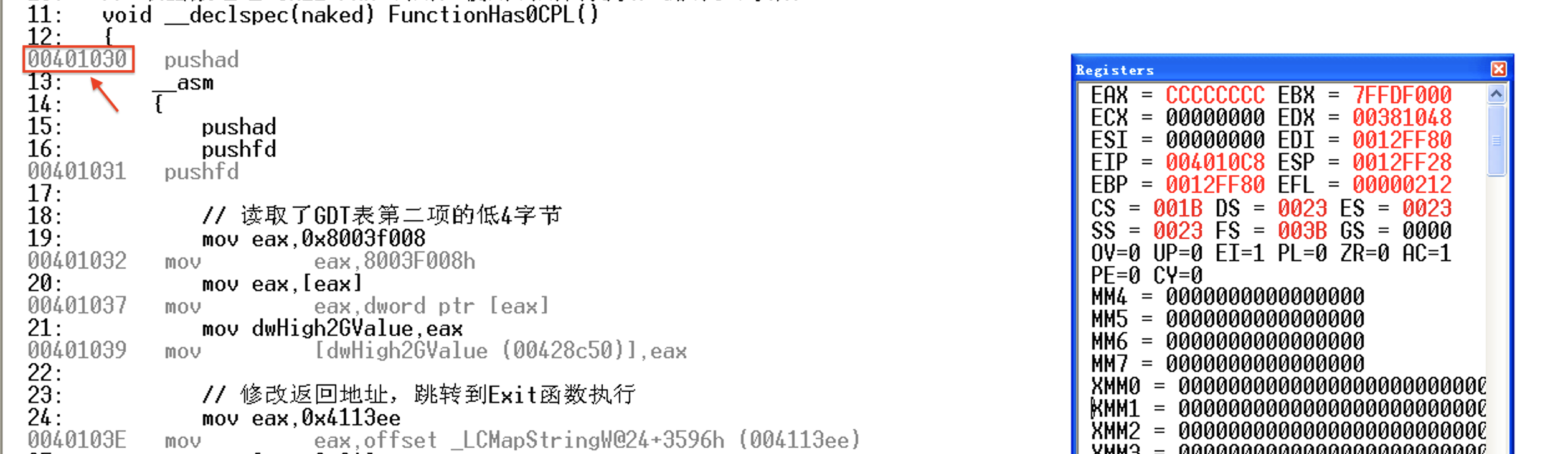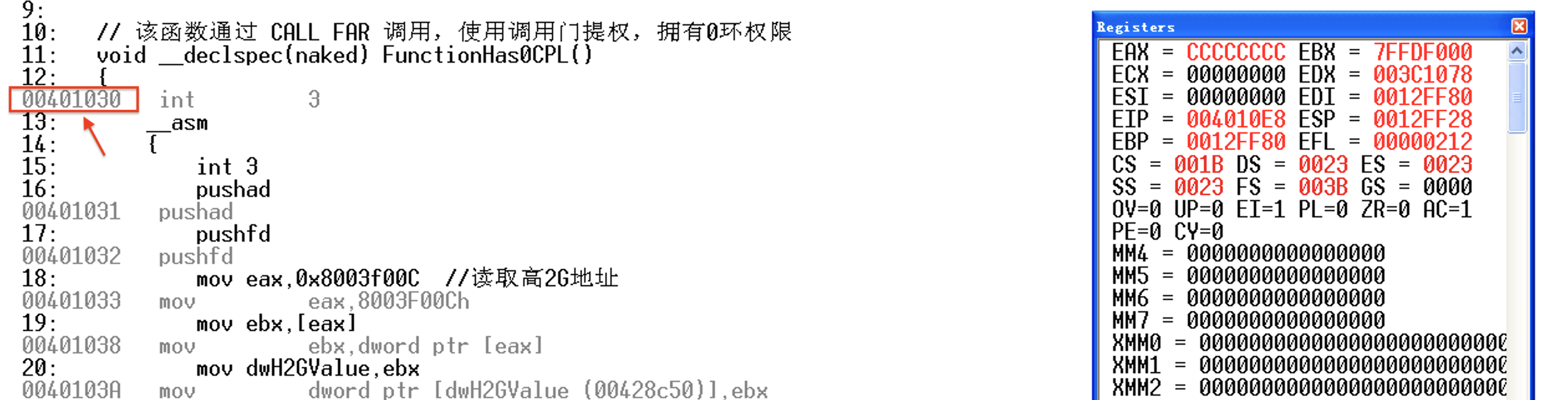 - CS、SS段寄存器的低2位存储的就是CPL(RPL是段选择子的低2位,CPL特指CS、SS低2位),当前程序的特权级别。Windows中只能为0x00或0x11