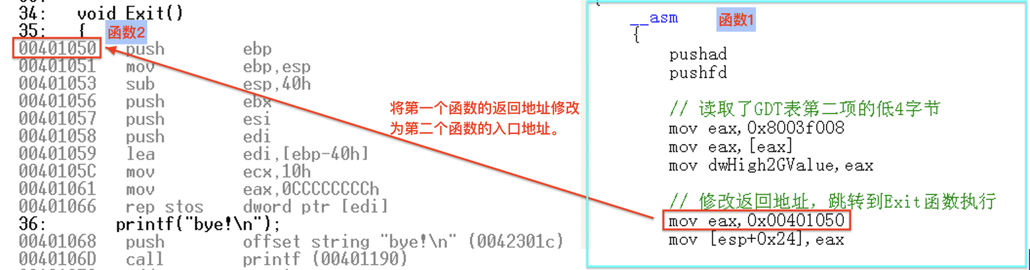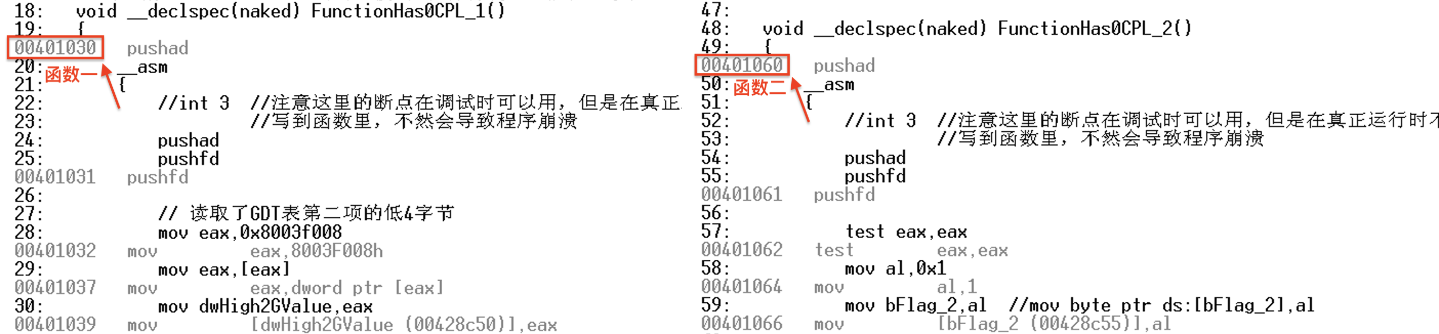}获取两个函数的入口地址准备构造两个调用门的段描述符。