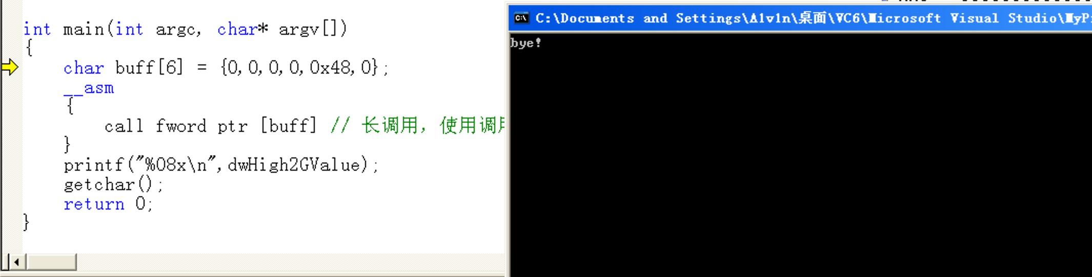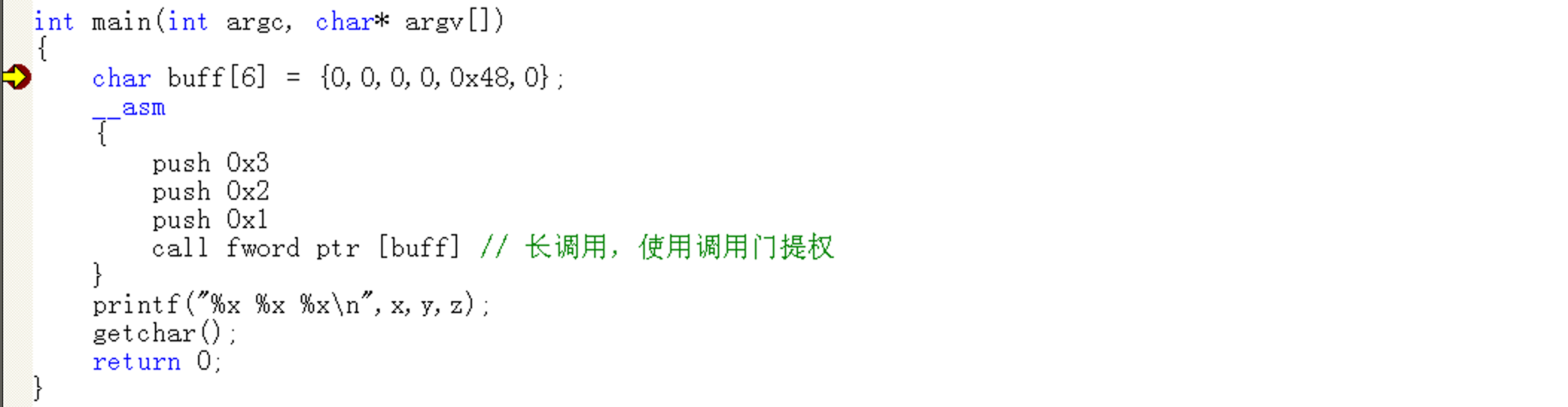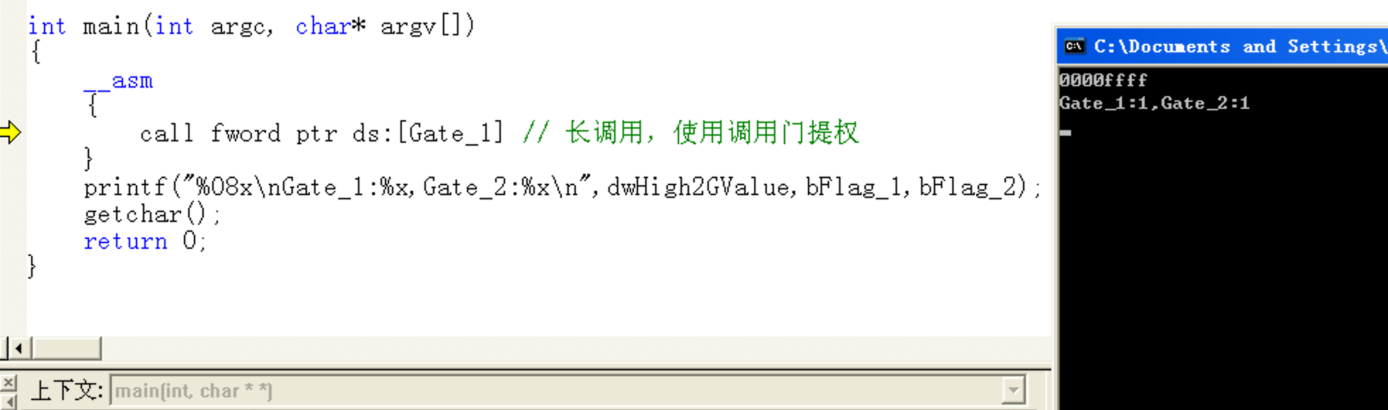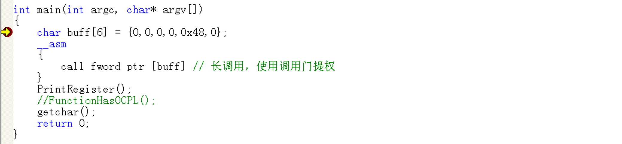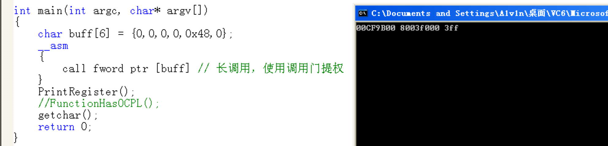 call fword ptr ds:[Gate_1] // 长调用,使用调用门提权